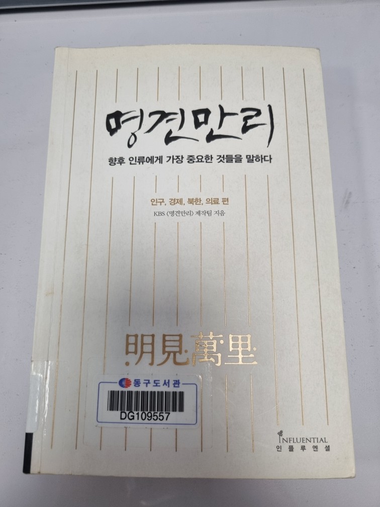 이 책은 KBS에서 방영한 시사교양 다큐멘터리인 <명견만리>를 글로 풀어낸 책이다. 우리나라의 미래에 대한 암울한 전망과 함께 이를 극복하기 위한 방향성을 제시한다. 이번 편에서는 인구 문제를 시작으로 경제, 북한, 의료 문제를 다루었다. 모두 무겁고 심각한 내용이라서 숙연해지고 생각이 많아지게끔 하는 책이었다.